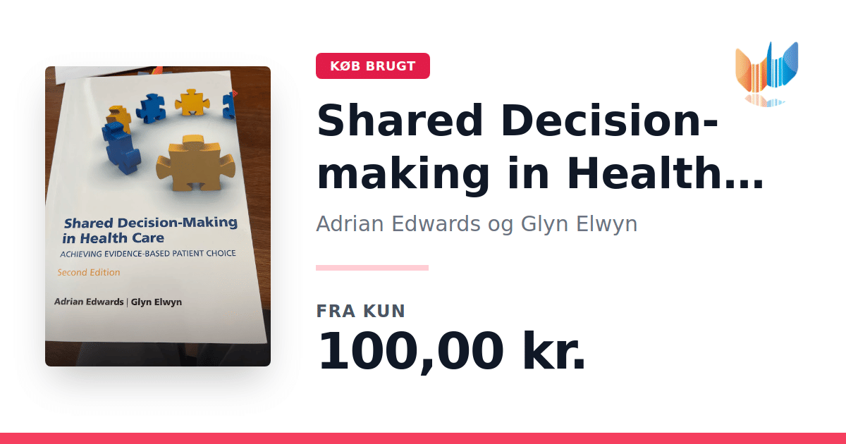 Lige nu kan du købe "Shared Decision-making in Health Care" af Adrian Edwards og Glyn Elwyn til kun 100,00 kr. Bogen du ser her er brugt, og i god stand. Vi har i øjeblikket kun et enkelt eksemplar til salg af "Shared Decision-making in Health Care", så slå til mens du kan!