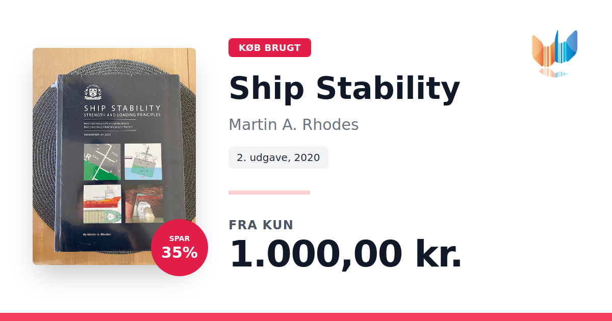 Lige nu kan du købe "Ship Stability" af Martin A. Rhodes til kun 1.000,00 kr. Du sparer hele 35% af nyprisen! Bogen du ser her er brugt, og i perfekt stand. Vi har i øjeblikket 2 eksemplarer til salg af "Ship Stability", så husk at se de forskellige udgaver.