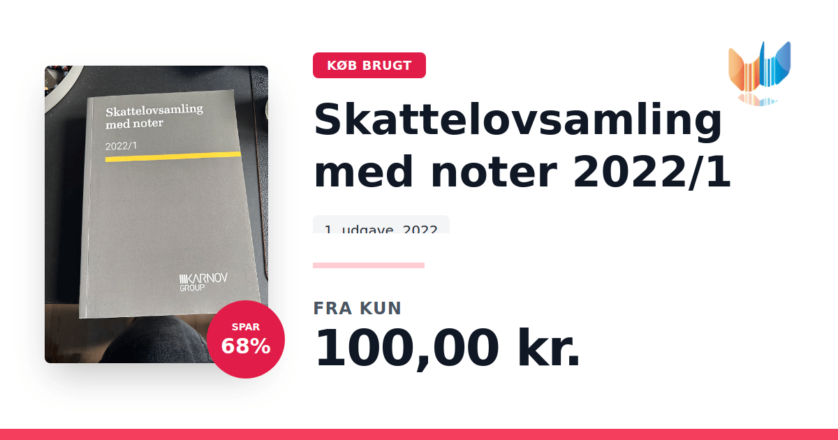 Lige nu kan du købe "Skattelovsamling med noter 2022/1" til kun 100,00 kr. Du sparer hele 68% af nyprisen! Bogen du ser her er brugt, og i perfekt stand. Vi har i øjeblikket kun et enkelt eksemplar til salg af "Skattelovsamling med noter 2022/1", så slå til mens du kan!
