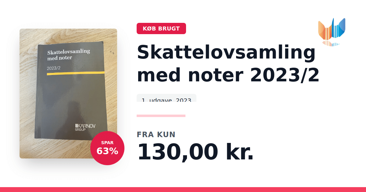 Lige nu kan du købe "Skattelovsamling med noter 2023/2" til kun 140,00 kr. Du sparer hele 60% af nyprisen! Bogen du ser her er brugt, og i perfekt stand. Vi har i øjeblikket kun et enkelt eksemplar til salg af "Skattelovsamling med noter 2023/2", så slå til mens du kan!