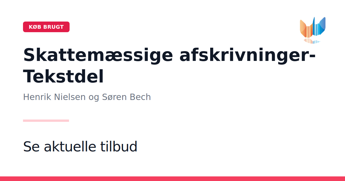 Skattemæssige afskrivninger – Tekstdel giver en grundig behandling af den gældende afskrivningslov og illustrerer, hvordan reglerne ønsker spil i praksis. Bogen redegør for både de direkte regler og de konsekvenser, de medfører, blandt andet i relation til samspillet mellem genvundne afskrivninger og ejendomsavancebeskatningsloven. Forfatterne Henrik Nielsen og Søren Bech inddrager også afskrivningsregler med hjemmel i lignings- og statsskatteloven samt behandler særlige situationer, såsom ved indtræden af skattepligt og i dødsboer. Desuden tages der hånd om reglerne for investeringsfonde og etableringskonti. I forbindelse med 5. udgave fremgår det, at bogen er udvidet betydeligt med fokus på ejendomsavance, gæld i fast ejendom samt momsforhold. Bogen supplerer desuden med udgivelsen af Skattemæssige afskrivninger – Skemadel, der med oversigter og taleksempler fungerer som et værdifuldt opslagsværk til rådgivning og løsning af konkrete problemstillinger.