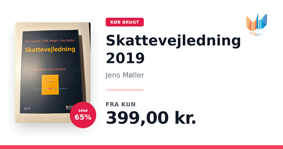 Lige nu kan du købe "Skattevejledning 2019" af Jens Møller til kun 399,00 kr. Du sparer hele 65% af nyprisen! Bogen du ser her er brugt, og i perfekt stand. Vi har i øjeblikket kun et enkelt eksemplar til salg af "Skattevejledning 2019", så slå til mens du kan!