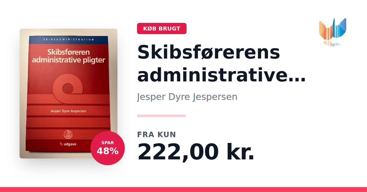 Lige nu kan du købe "Skibsførerens administrative pligter" af Jesper Dyre Jespersen til kun 222,00 kr. Du sparer hele 48% af nyprisen! Bogen du ser her er brugt, og i perfekt stand. Vi har i øjeblikket kun et enkelt eksemplar til salg af "Skibsførerens administrative pligter", så slå til mens du kan!