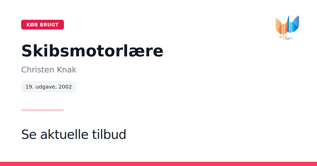Konstruktion, drift og vedligehold er kernen i Skibsmotorlære, der giver en grundig og opdateret indsigt i skibsmotorers opbygning og funktion. Bogen er resultatet af en revideret og ajourført version af den første udgave fra 1994, lavet på foranledning af Søfartsstyrelsen med henblik på at understøtte motorlæreundervisningen ved maskinmesterskolen.