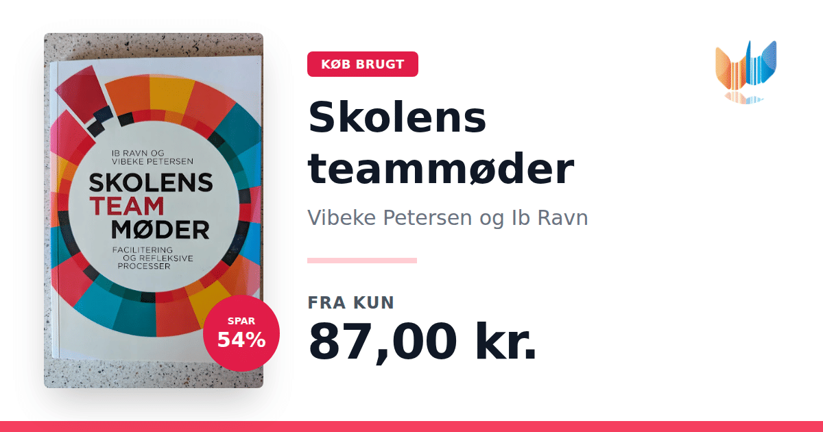 Lige nu kan du købe "Skolens teammøder" af Vibeke Petersen og Ib Ravn til kun 87,00 kr. Du sparer hele 54% af nyprisen! Bogen du ser her er brugt, og i god stand. Vi har i øjeblikket kun et enkelt eksemplar til salg af "Skolens teammøder", så slå til mens du kan!