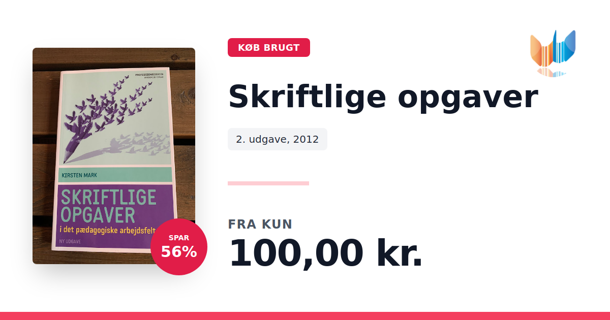 Lige nu kan du købe "Skriftlige opgaver" til kun 100,00 kr. Du sparer hele 56% af nyprisen! Bogen du ser her er brugt, og i god stand. Vi har i øjeblikket kun et enkelt eksemplar til salg af "Skriftlige opgaver", så slå til mens du kan!