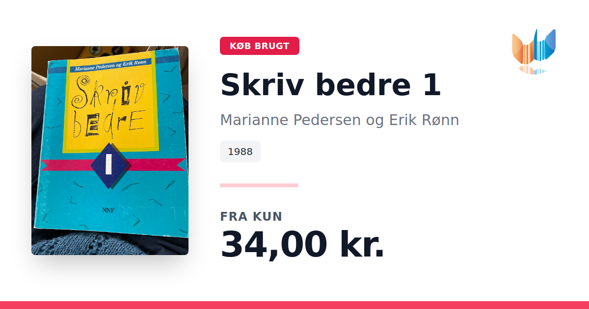 Lige nu kan du købe "Skriv bedre 1" af Marianne Pedersen og Erik Rønn til kun 34,00 kr. Bogen du ser her er brugt, og i god stand. Vi har i øjeblikket kun et enkelt eksemplar til salg af "Skriv bedre 1", så slå til mens du kan!
