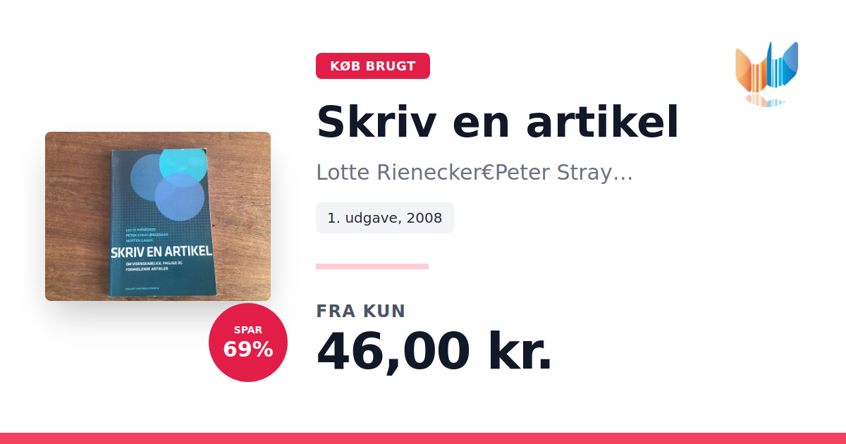 Lige nu kan du købe "Skriv en artikel" af Lotte Rienecker€Peter Stray Jørgensen€Morten Gandil til kun 46,00 kr. Du sparer hele 69% af nyprisen! Bogen du ser her er brugt, og i perfekt stand. Vi har i øjeblikket kun et enkelt eksemplar til salg af "Skriv en artikel", så slå til mens du kan!