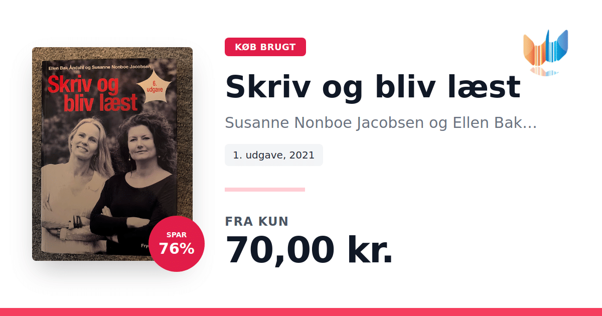 Er du træt af kedelige formularer og uinspirerende sprogbrug? Skriv og bliv læst giver dig nøglen til at skabe professionelle tekster, der rammer plet – uanset om det drejer sig om referater, e-mails, pressemeddelelser, blogindlæg eller meget mere. I denne opslagsbog får du redskaberne til at tilpasse din skrivestil til din modtager, strukturere dine tekster og formulere indholdet både præcist og engagerende. Gennem praktiske eksempler og lettilgængelige råd lærer du, hvordan du undgår misforståelser og fejl, og hvordan dit budskab kan blive tydeligt og overbevisende. Bogen udgivet af Frydenlund i 2021 er skabt af Susanne Nonboe Jacobsen og Ellen Bak Åndahl, to erfarne cand.mag.-er, som sammen driver Sprogkontoret. Med Skriv og bliv læst i hånden er du godt rustet til at skrive med selvtillid og professionalisme.