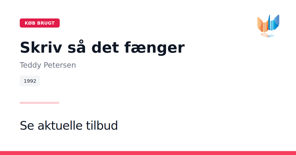 Lige nu kan du købe "Skriv så det fænger" af Teddy Petersen til kun 45,00 kr. Bogen du ser her er brugt, og i perfekt stand. Vi har i øjeblikket kun et enkelt eksemplar til salg af "Skriv så det fænger", så slå til mens du kan!