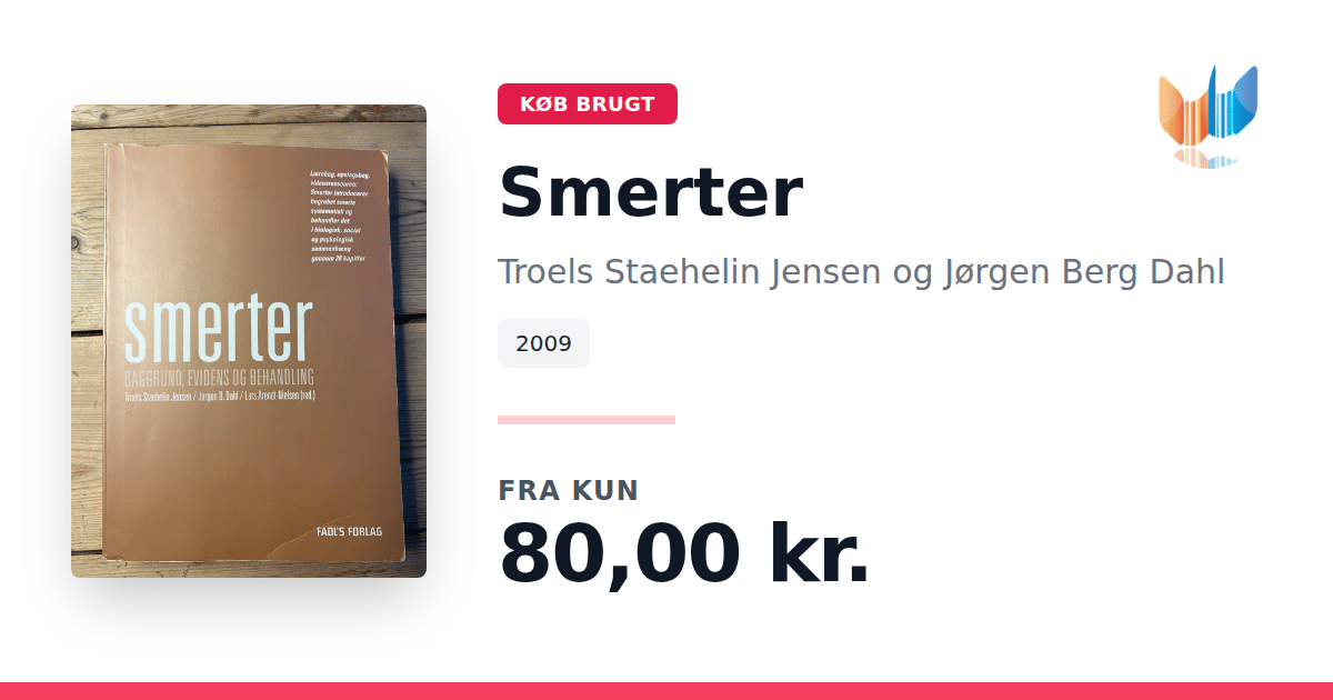 Lige nu kan du købe "Smerter" af Troels Staehelin Jensen og Jørgen Berg Dahl til kun 80,00 kr. Bogen du ser her er brugt, og i god stand. Vi har i øjeblikket 3 eksemplarer til salg af "Smerter", så husk at se de forskellige udgaver.