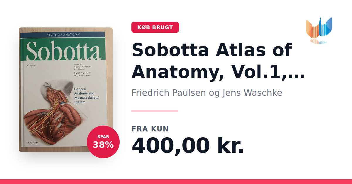 Lige nu kan du købe "Sobotta Atlas of Anatomy, Vol.1, 16th ed., English/Latin" af Friedrich Paulsen og Jens Waschke til kun 400,00 kr. Du sparer hele 38% af nyprisen! Bogen du ser her er brugt, og i perfekt stand. Vi har i øjeblikket kun et enkelt eksemplar til salg af "Sobotta Atlas of Anatomy, Vol.1, 16th ed., English/Latin", så slå til mens du kan!