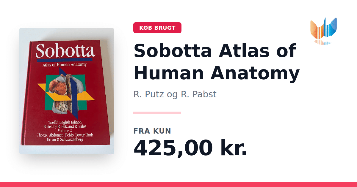 Lige nu kan du købe "Sobotta Atlas of Human Anatomy" af R. Putz og R. Pabst til kun 425,00 kr. Bogen du ser her er brugt, og i perfekt stand. Vi har i øjeblikket 2 eksemplarer til salg af "Atlas of Human Anatomy", så husk at se de forskellige udgaver.