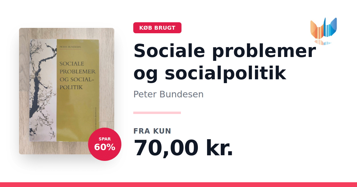 Lige nu kan du købe "Sociale problemer og socialpolitik" af Peter Bundesen til kun 70,00 kr. Du sparer hele 60% af nyprisen! Bogen du ser her er brugt, og i perfekt stand. Vi har i øjeblikket 3 eksemplarer til salg af "Sociale problemer og socialpolitik", så husk at se de forskellige udgaver.