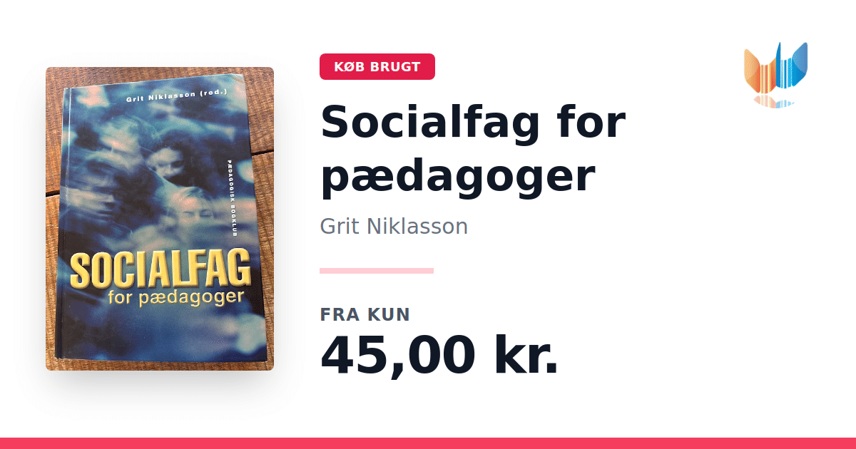 Lige nu kan du købe "Socialfag for pædagoger" af Grit Niklasson til kun 45,00 kr. Bogen du ser her er brugt, og i perfekt stand. Vi har i øjeblikket kun et enkelt eksemplar til salg af "Socialfag for pædagoger", så slå til mens du kan!