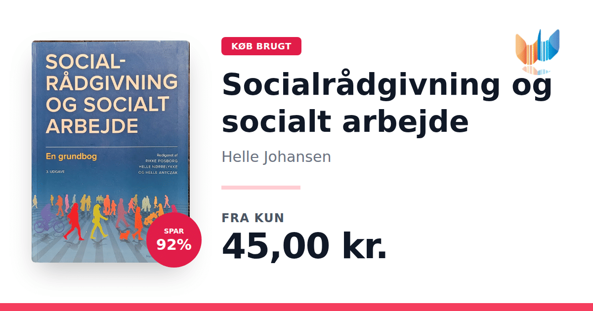 Socialrådgivning og socialt arbejde – En grundbog er en central lærebog for studerende inden for socialrådgiveruddannelsen og andre med et socialfagligt fokus. Bogen belyser, hvordan professionelt socialt arbejde kan foregå i et tværfagligt regi, med særlig opmærksomhed på mødet med borgere, der befinder sig i udsatte livssituationer. I denne grundbog introduceres læseren til socialrådgiverfagets teoretiske og etiske fundament samt de metoder, der anvendes i rådgivning, myndighedsudøvelse og social behandling. Selvom de politiske beslutninger, gældende lovgivning og etablerede metoder sætter rammerne for det daglige arbejde, understreges betydningen af den enkelte socialrådgivers faglighed og professionelle dømmekraft. Bogen er struktureret i fire overordnede dele: den første del omhandler fagets historie, teori og etik; den anden fokuserer på de praktiske metoder; den tredje præsenterer centrale arbejdsområder som arbejde med børn og unge, beskæftigelse, støtte til udsatte borgere samt socialt arbejde i boligområder; og den fjerde del giver redskaber til supervision, dokumentation og innovation i praksis. Med indsigtsfulde perspektiver og relevante eksempler fremmer bogen en nuanceret forståelse af det komplekse sociale arbejde.