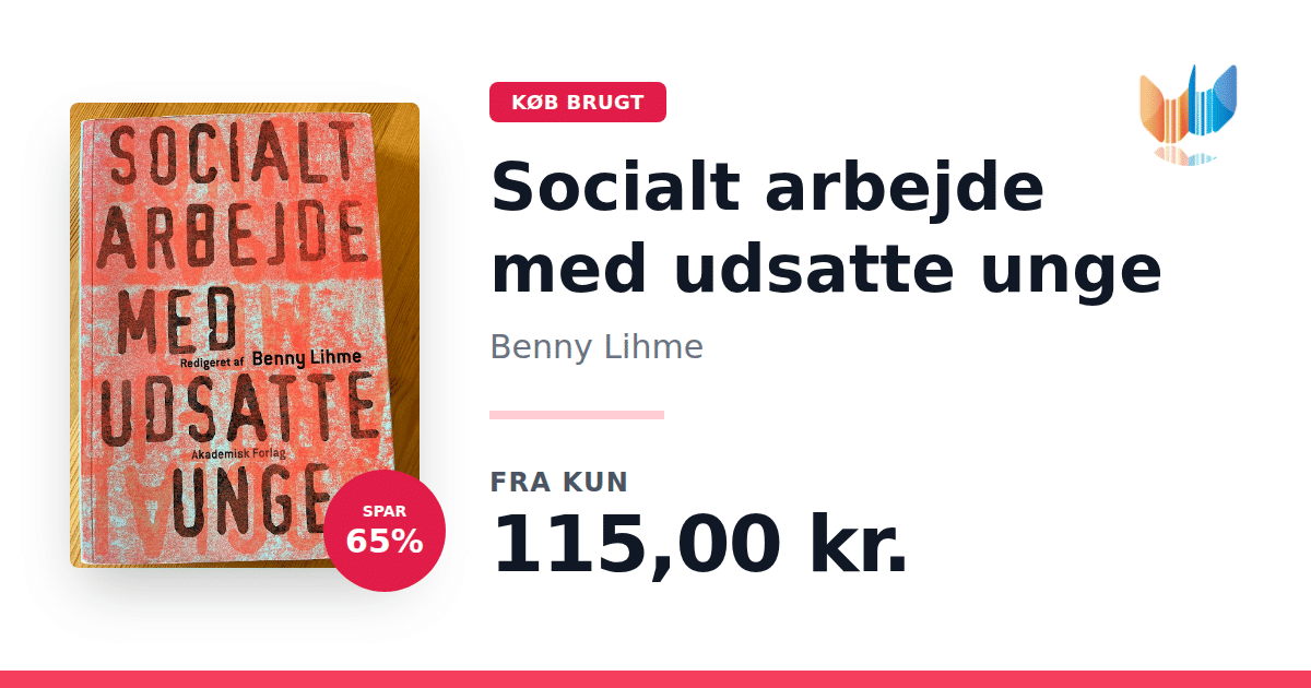 Lige nu kan du købe "Socialt arbejde med udsatte unge" af Benny Lihme til kun 115,00 kr. Du sparer hele 65% af nyprisen! Bogen du ser her er brugt, og i perfekt stand. Vi har i øjeblikket kun et enkelt eksemplar til salg af "Socialt arbejde med udsatte unge", så slå til mens du kan!