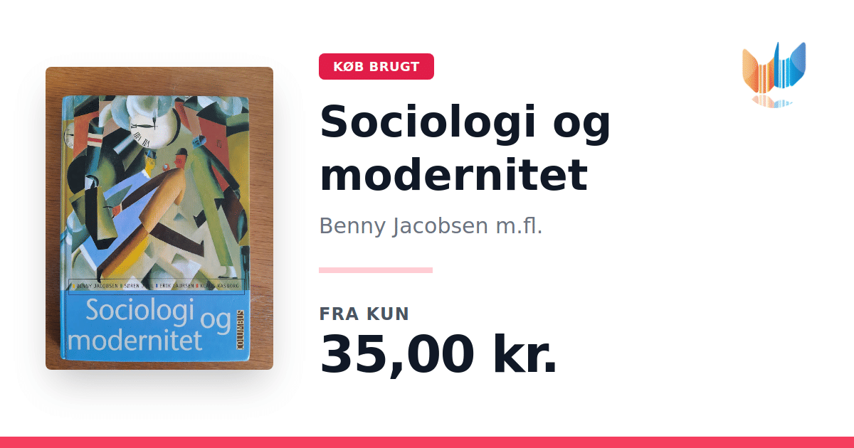Lige nu kan du købe "Sociologi og modernitet" af Benny Jacobsen m.fl. til kun 35,00 kr. Bogen du ser her er brugt, og i god stand. Vi har i øjeblikket 3 eksemplarer til salg af "Sociologi og modernitet", så husk at se de forskellige udgaver.