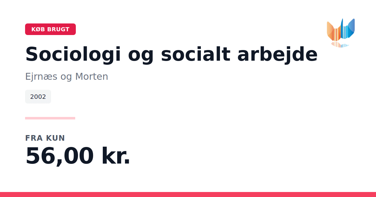 Lige nu kan du købe "Sociologi og socialt arbejde" af Ejrnæs og Morten til kun 56,00 kr. Bogen du ser her er brugt, og i god stand. Vi har i øjeblikket 2 eksemplarer til salg af "Sociologi og socialt arbejde", så husk at se de forskellige udgaver.