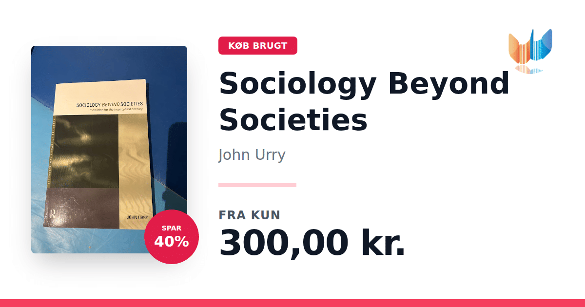 Lige nu kan du købe "Sociology Beyond Societies" af John Urry til kun 300,00 kr. Du sparer hele 40% af nyprisen! Bogen du ser her er brugt, og i god stand. Vi har i øjeblikket kun et enkelt eksemplar til salg af "Sociology Beyond Societies", så slå til mens du kan!