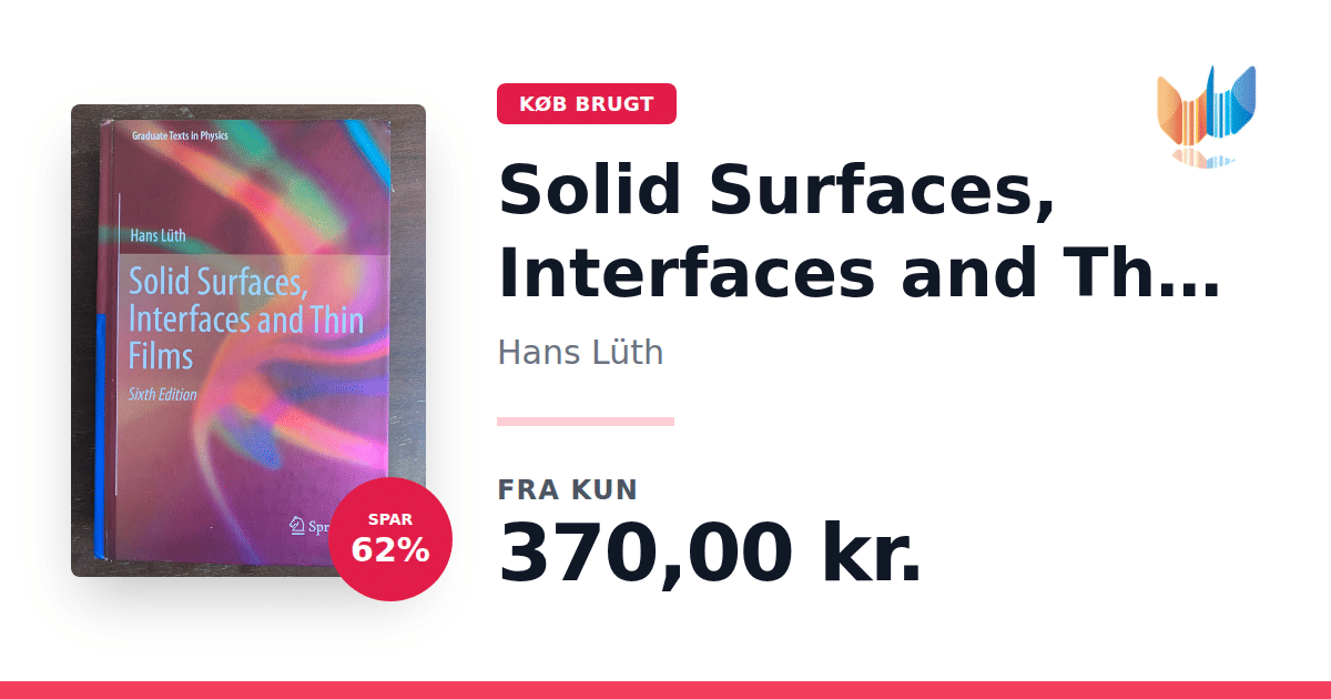 Lige nu kan du købe "Solid Surfaces, Interfaces and Thin Films" af Hans Lüth til kun 370,00 kr. Du sparer hele 62% af nyprisen! Bogen du ser her er brugt, og i god stand. Vi har i øjeblikket 2 eksemplarer til salg af "Solid Surfaces, Interfaces and Thin Films", så husk at se de forskellige udgaver.