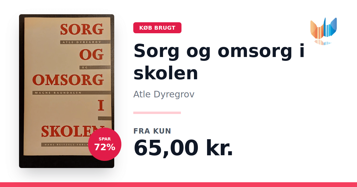 Lige nu kan du købe "Sorg og omsorg i skolen" af Atle Dyregrov til kun 65,00 kr. Du sparer hele 72% af nyprisen! Bogen du ser her er brugt, og i god stand. Vi har i øjeblikket kun et enkelt eksemplar til salg af "Sorg og omsorg i skolen", så slå til mens du kan!