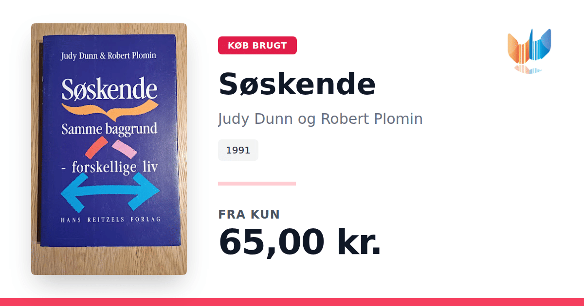 Lige nu kan du købe "Søskende" af Judy Dunn og Robert Plomin til kun 65,00 kr. Bogen du ser her er brugt, og i god stand. Vi har i øjeblikket kun et enkelt eksemplar til salg af "Søskende", så slå til mens du kan!