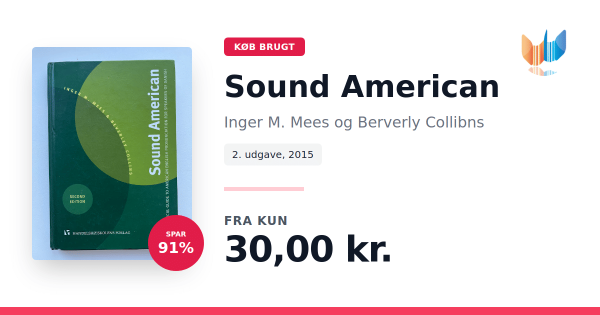 Lige nu kan du købe "Sound American" af Inger M. Mees og Berverly Collibns til kun 30,00 kr. Du sparer hele 91% af nyprisen! Bogen du ser her er brugt, og i god stand. Vi har i øjeblikket kun et enkelt eksemplar til salg af "Sound American", så slå til mens du kan!