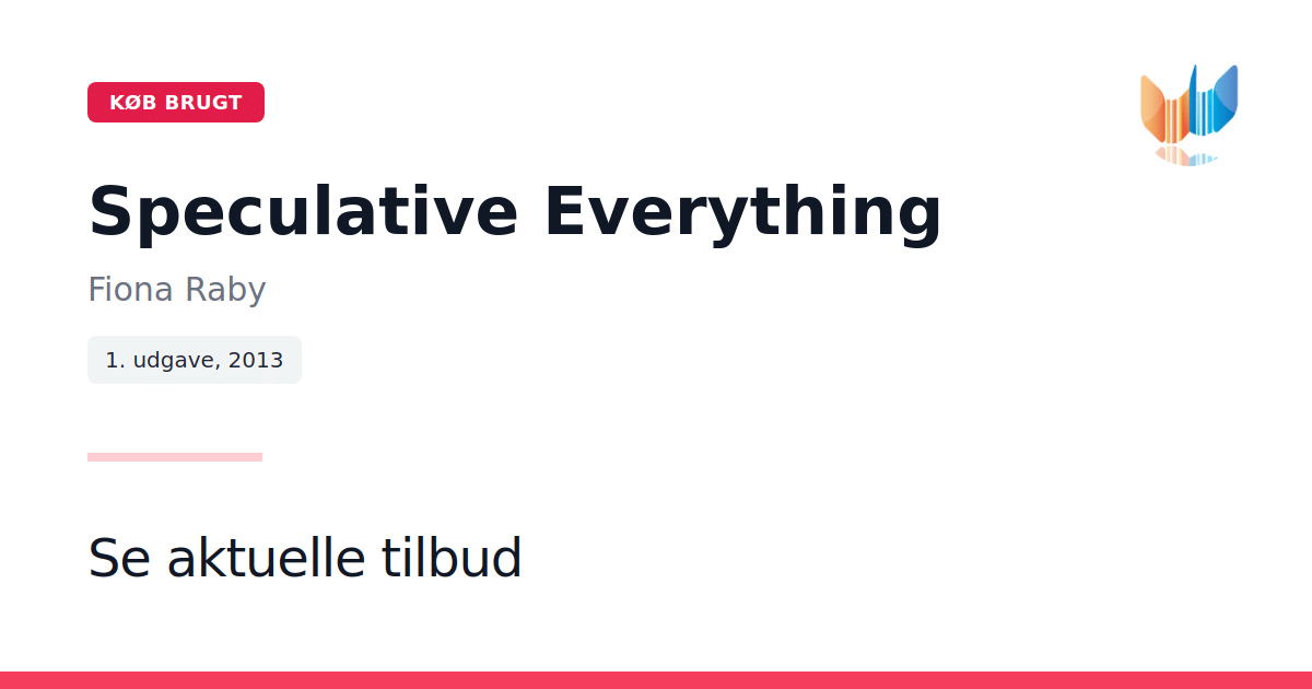 Speculative Everything: Design, Fiction, and Social Dreaming åbner døren til en ny måde at tænke design på. Anthony Dunne og Fiona Raby argumenterer for, at design ikke bare handler om at skabe brugervenlige og attraktive produkter, men om at udforske idéer og forestille sig mulige fremtider. Bogen udfordrer den gængse teknologifokuserede tankegang ved at stille udforskende spørgsmål til, hvordan ting kunne være. I stedet for at forudsige morgendagen gennem trendekstrapolation inviterer Dunne og Raby til at stille "hvad nu hvis"-spørgsmål, der skaber debat om de ønskværdige - og uønskede - fremtider. Gennem disse spekulative scenarier bliver virkeligheden mere formbar, og vi får modet til at tænke radikalt nyt. Speculative Everything fører læseren på en inspirerende rundtur i et kulturelt landskab af design, kunst, arkitektur, film og litteratur. Her præsenteres blandt andet idéer til en solcelledrevet restaurant, et flyvepapir-ur, en menstruationsmaskine og en truck, der dyrker skyer. Ved at lade innovation og fantasi gå hånd i hånd, viser Dunne og Raby, hvordan spekulativt design kan øge sandsynligheden for at forme fremtider, vi virkelig ønsker. Udgivet af MIT Press 2013, 240 sider.