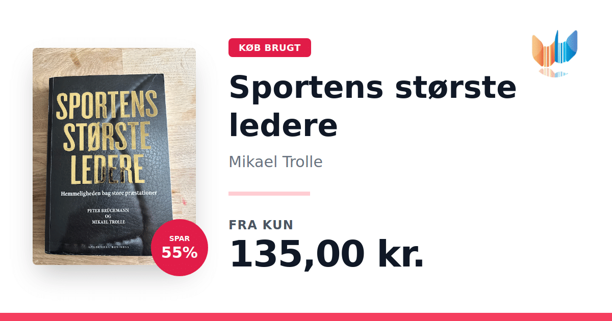 Lige nu kan du købe "Sportens største ledere" af Mikael Trolle til kun 135,00 kr. Du sparer hele 55% af nyprisen! Bogen du ser her er brugt, og i perfekt stand. Vi har i øjeblikket kun et enkelt eksemplar til salg af "Sportens største ledere", så slå til mens du kan!