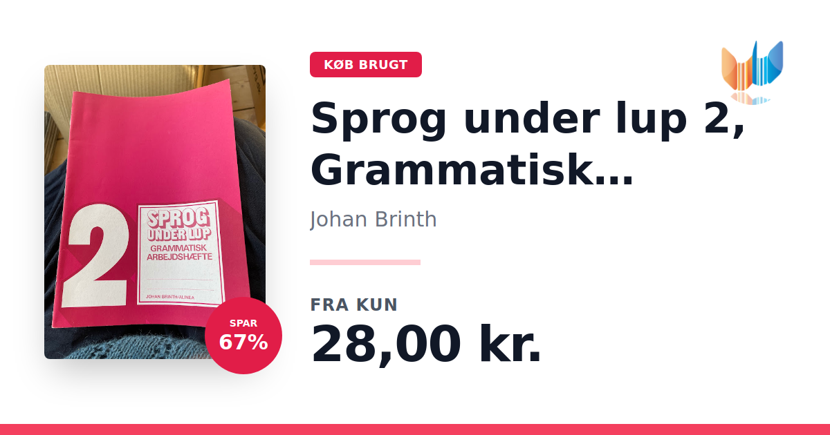 Lige nu kan du købe "Sprog under lup 2, Grammatisk arbejdshæfte, 3.-5.kl." af Johan Brinth til kun 28,00 kr. Du sparer hele 67% af nyprisen! Bogen du ser her er brugt, og i god stand. Vi har i øjeblikket kun et enkelt eksemplar til salg af "Sprog under lup 2, Grammatisk arbejdshæfte, 3.-5.kl.", så slå til mens du kan!