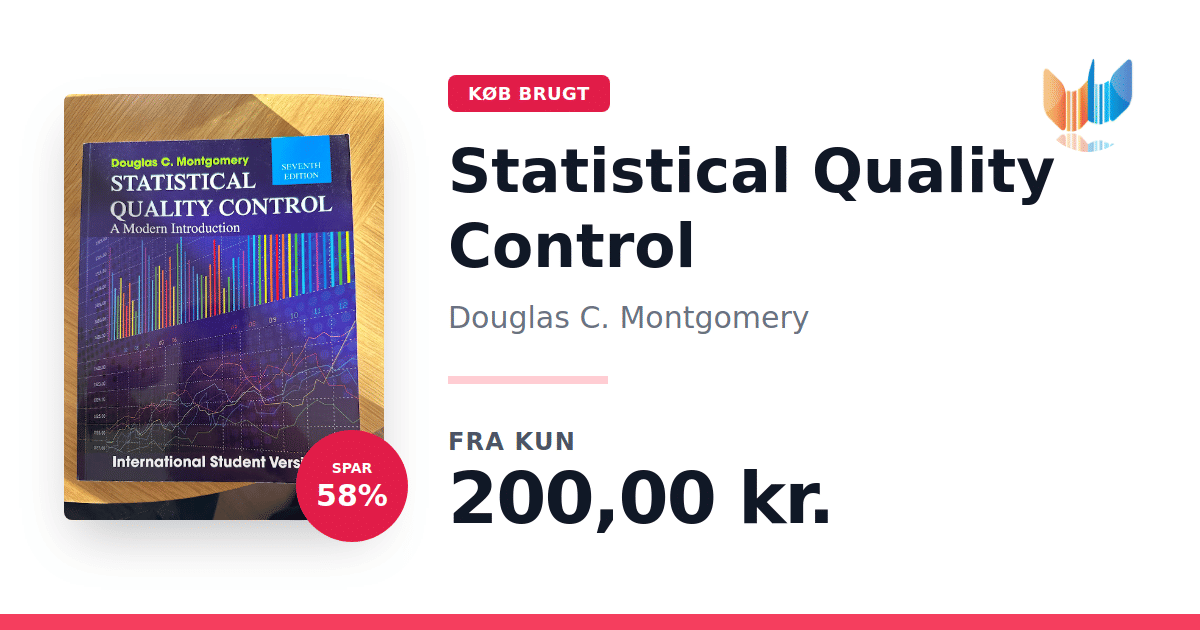 Lige nu kan du købe "Statistical Quality Control" af Douglas C. Montgomery til kun 200,00 kr. Du sparer hele 58% af nyprisen! Bogen du ser her er brugt, og i perfekt stand. Vi har i øjeblikket 2 eksemplarer til salg af "Statistical Quality Control", så husk at se de forskellige udgaver.