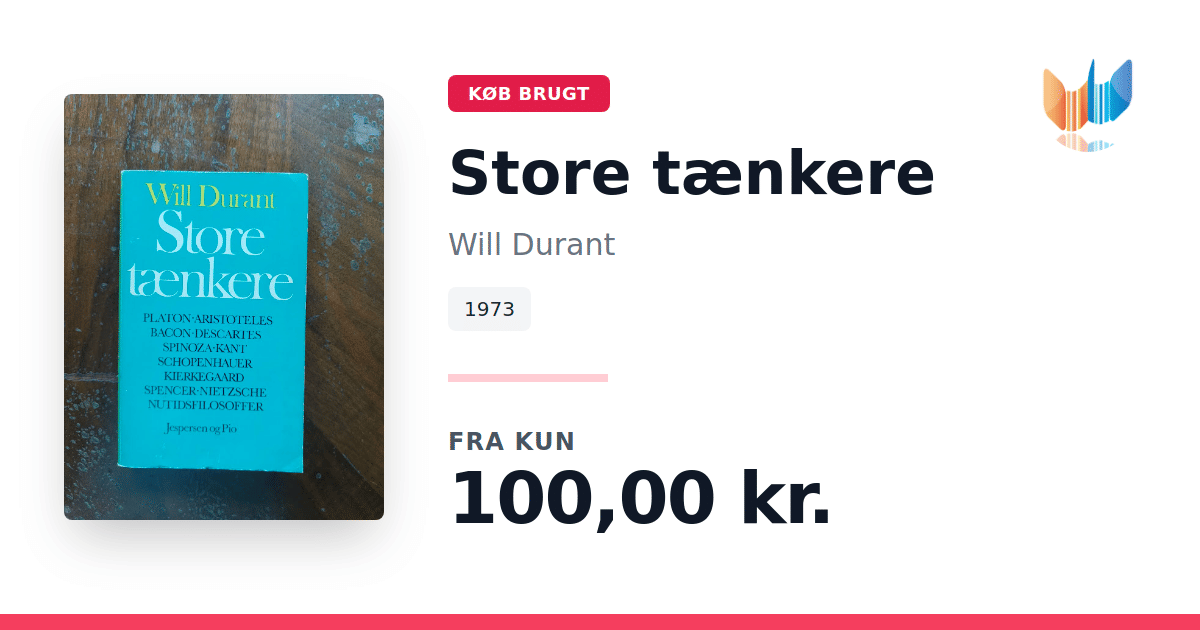 Lige nu kan du købe "Store tænkere" af Will Durant til kun 100,00 kr. Bogen du ser her er brugt, og i god stand. Vi har i øjeblikket kun et enkelt eksemplar til salg af "Store tænkere", så slå til mens du kan!