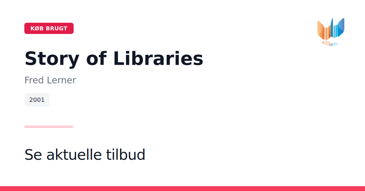 Story of Libraries fortæller historien om menneskehedens bibliotekstradition fra skriftens opfindelse til computeralderens digitale arkiver. Gennem 262 sider udfolder Fred Lerner, hvordan bibliotekernes rolle har udviklet sig i takt med kulturernes krav og muligheder. Bogen indleder i oldtidens Egypten og Han-dynastiets Kina før den bevæger sig til den vestlige klassiske verden. Her får vi blandt andet indblik i det storslåede bibliotek i Alexandria og dets gradvise forsvinden. I Harun al-Rashids Baghdad, middelalderens klostre og renæssancens humanistiske biblioteker ser vi, hvordan viden blev bevaret og formidlet gennem turbulente tider. Fortællingen fortsætter til kolonitidens Amerika, Det Kongelige Bibliotek og universitetsbibliotekerne, der lagde fundamentet for moderne forskning. Til allersidst skildres overgangen til vores nutidige, store offentlige biblioteker og deres digitale omstilling i computeralderen.