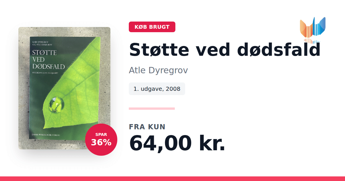 Lige nu kan du købe "Støtte ved dødsfald" af Atle Dyregrov til kun 64,00 kr. Du sparer hele 36% af nyprisen! Bogen du ser her er brugt, og i perfekt stand. Vi har i øjeblikket kun et enkelt eksemplar til salg af "Støtte ved dødsfald", så slå til mens du kan!