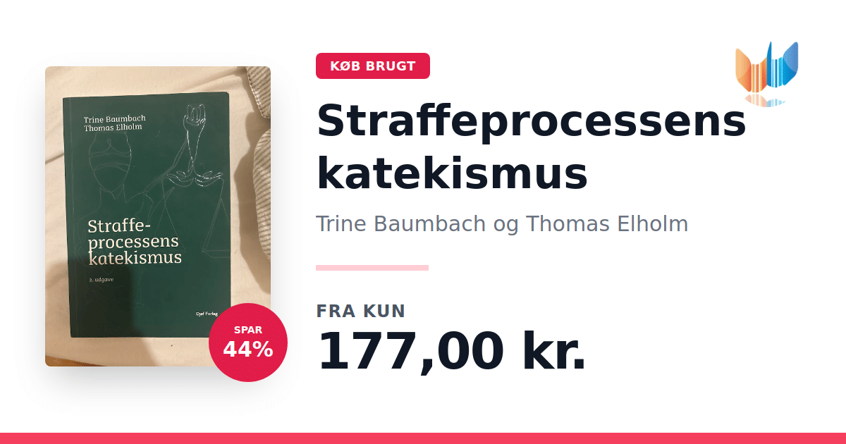 Lige nu kan du købe "Straffeprocessens katekismus" af Trine Baumbach og Thomas Elholm til kun 177,00 kr. Du sparer hele 46% af nyprisen! Bogen du ser her er brugt, og i god stand. Vi har i øjeblikket kun et enkelt eksemplar til salg af "Straffeprocessens katekismus", så slå til mens du kan!