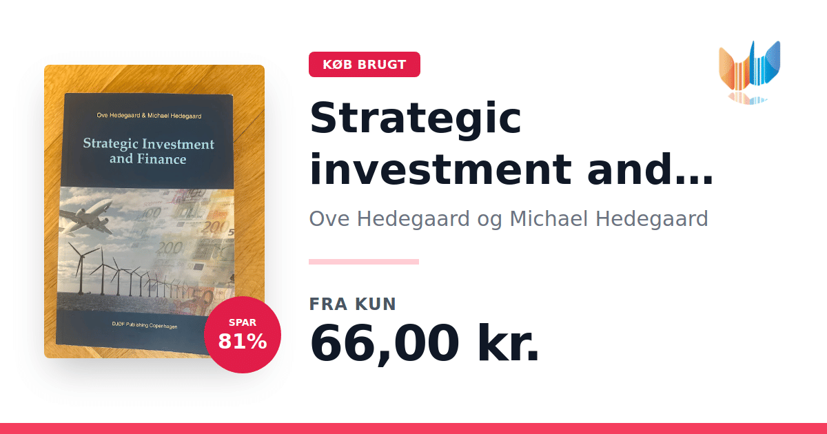 Lige nu kan du købe "Strategic investment and finance" af Ove Hedegaard og Michael Hedegaard til kun 66,00 kr. Du sparer hele 81% af nyprisen! Bogen du ser her er brugt, og i god stand. Vi har i øjeblikket kun et enkelt eksemplar til salg af "Strategic investment and finance", så slå til mens du kan!