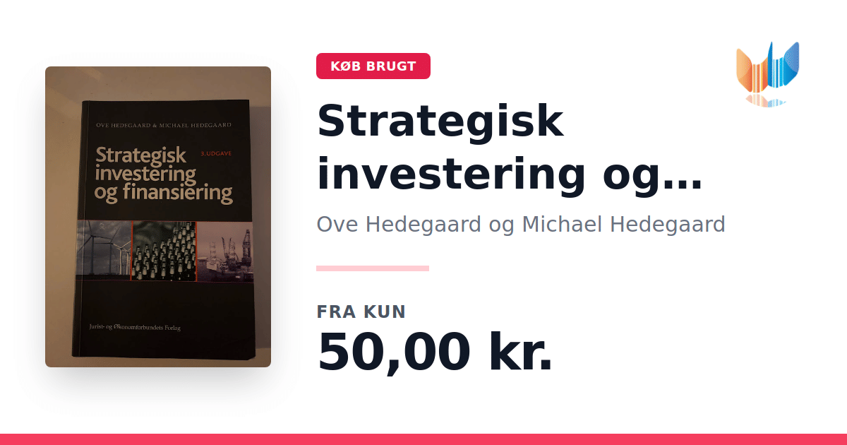 Lige nu kan du købe "Strategisk investering og finansiering" af Ove Hedegaard og Michael Hedegaard til kun 50,00 kr. Bogen du ser her er brugt, og i god stand. Vi har i øjeblikket 3 eksemplarer til salg af "Strategisk investering og finansiering", så husk at se de forskellige udgaver.