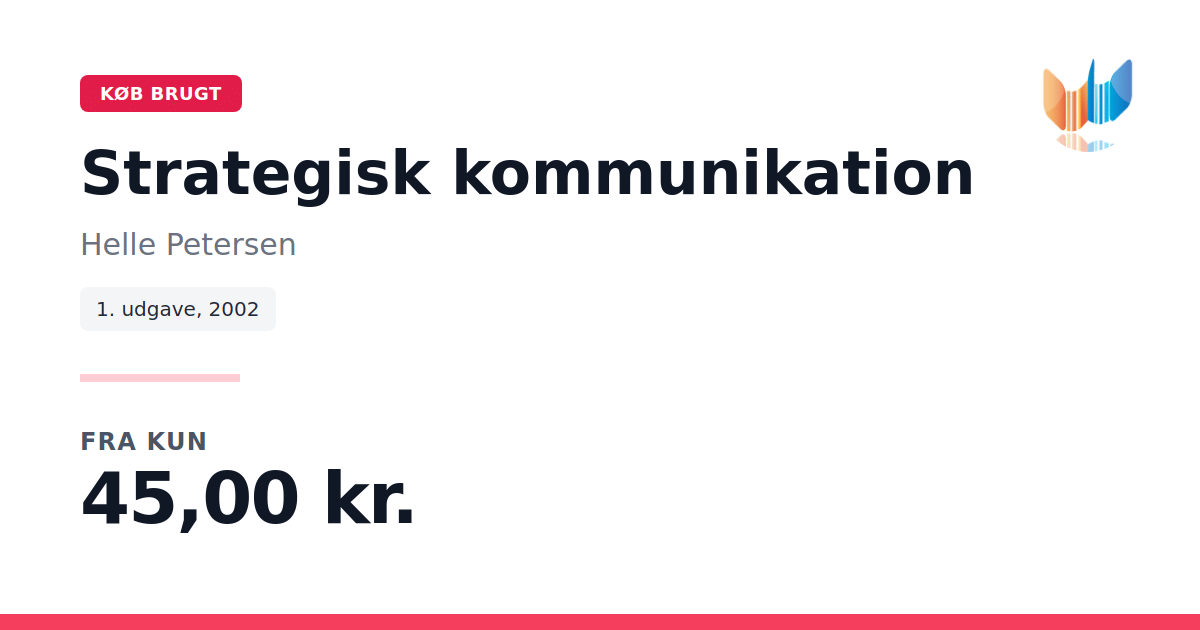 I en tid hvor sammenhængen mellem kommunikation og overordnet strategi er altafgørende, inviterer Helle Petersen til en reflekteret tilgang til strategisk kommunikation. Bogen udforsker, hvordan man kan forene virksomhedens kommunikationsindsats med ledelsens strategiske målsætninger på en overskuelig og praktisk måde. Med introduktionen af to nyskabende værktøjer – kommunikationsproceduren og den strategiske kommunikationsmåling – tilbyder bogen konkrete redskaber til at styrke og dokumentere kommunikationsafdelingens bidrag. Fremstillet som letanvendelige modeller, undgår Petersen unødvendig kompleksitet og giver dermed læseren en brugbar guide til et moderne og effektivt kommunikationsarbejde.
