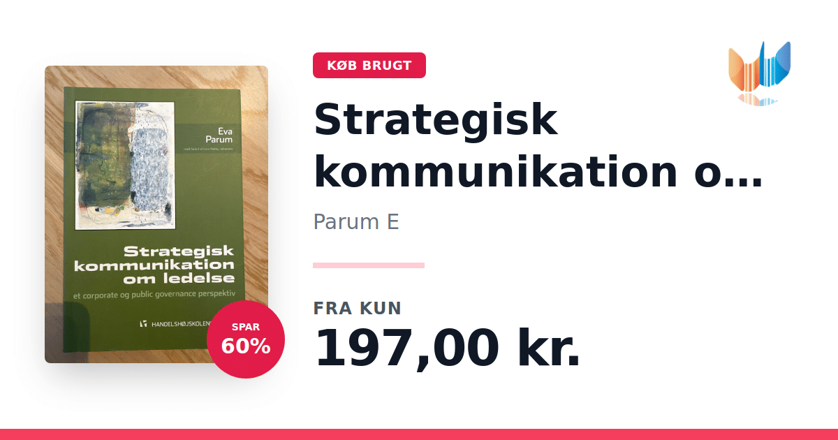 Lige nu kan du købe "Strategisk kommunikation om ledelse" af Parum E til kun 197,00 kr. Du sparer hele 60% af nyprisen! Bogen du ser her er brugt, og i perfekt stand. Vi har i øjeblikket kun et enkelt eksemplar til salg af "Strategisk kommunikation om ledelse", så slå til mens du kan!