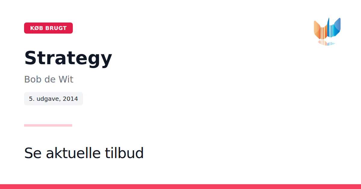 Nu i sin femte udgave byder Strategy på en ægte global tilgang til strategisk tænkning. Bob de Wit og Ron Meyer bevarer den anerkendte ‘paradoks’-metode fra tidligere udgaver, hvor modsatrettede synsvinkler, udvalgte læsninger og virkelighedsnære cases skaber grundlag for både studie- og erhvervsdiskussion. Bogen er struktureret omkring en række modstillinger, der udfordrer læseren til at reflektere over strategiske valg og konsekvenser. Hver sektion præsenterer en ny vinkel på, hvad strategi kan være, og inviterer til debat ved hjælp af konkrete eksempler fra internationale virksomheder. I denne udgave trækkes perspektivet endnu længere ved at fremhæve Kinas og Indiens stigende betydning i erhvervslivet og ved at inddrage strategifilosofier fra begge regioner. Strategy understreger, at ægte strategiforståelse kun opnås gennem en mangfoldighed af indsigter fra hele kloden - der findes ingen én enkelt løsning.