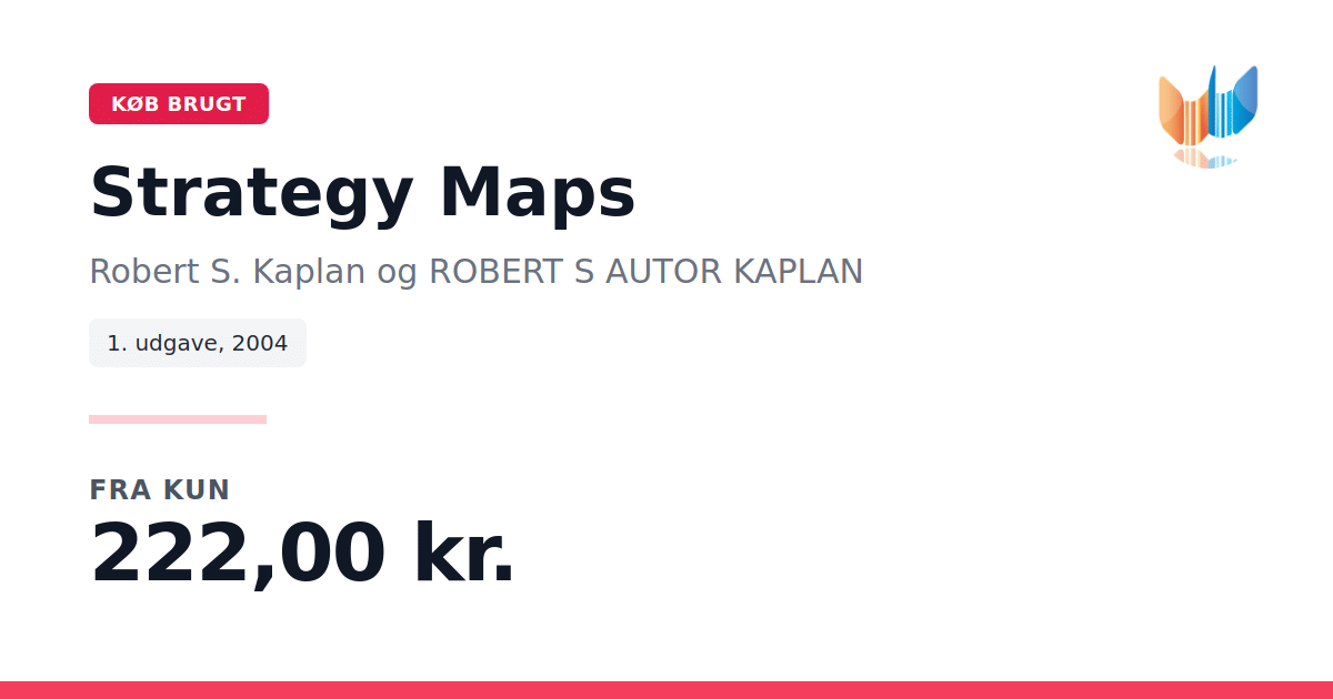 Lige nu kan du købe "Strategy Maps" af Robert S. Kaplan og ROBERT S AUTOR KAPLAN til kun 222,00 kr. Du sparer hele 11% af nyprisen! Bogen du ser her er brugt, og i perfekt stand. Vi har i øjeblikket kun et enkelt eksemplar til salg af "Strategy Maps", så slå til mens du kan!