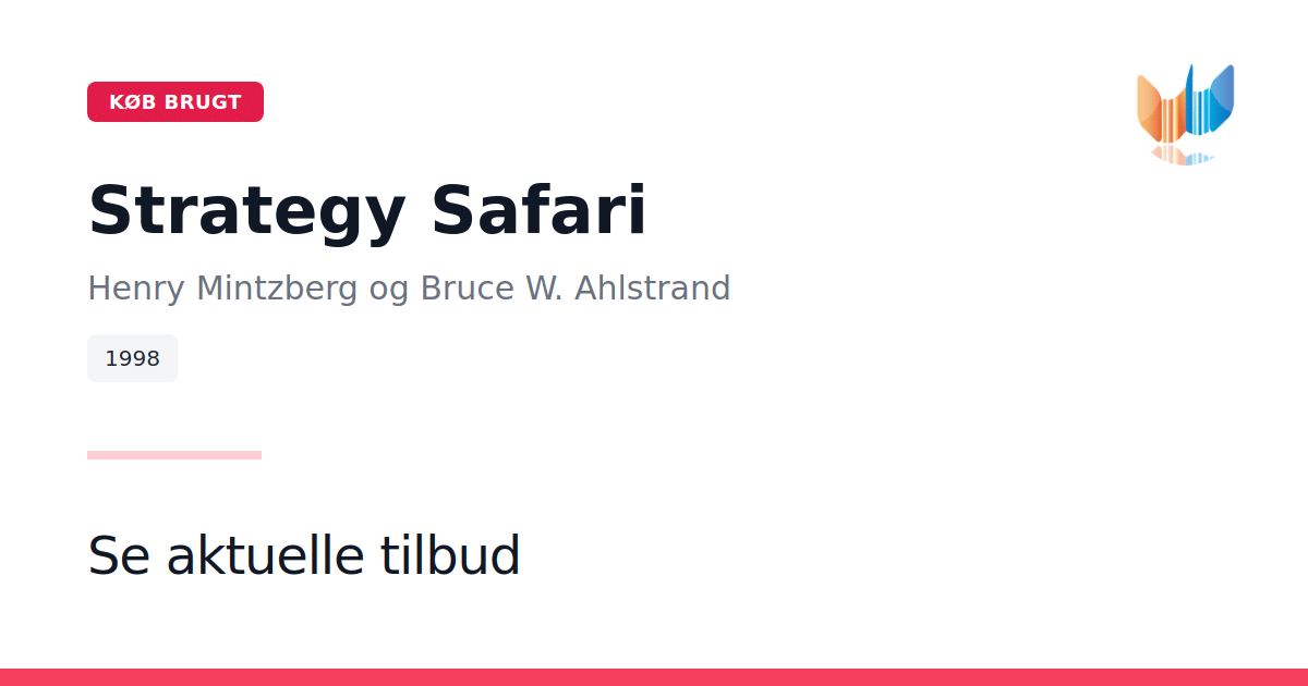 Strategy Safari af Henry Mintzberg, Bruce W. Ahlstrand og Joseph Lampel er en international bestseller og er i dag anerkendt som en moderne klassiker inden for strategisk ledelse. Ingen anden bog samler strategiens udvikling så levende og underholdende, og den fungerer som en guidet tur gennem feltets vilde landskaber. Siden første udgivelse i 1998 har ledere, konsulenter og forskere verden over taget værket til sig som et uundværligt redskab. Bogen er oversat til mere end ti sprog og anvendes på førende MBA-uddannelser verden over. Forfatterne præsenterer ti forskellige skoler inden for strategiformulering, hver med sit eget perspektiv og metodiske bidrag. Gennem en autoritativ katalogisering og et klart kort over strategiens terræn hjælper Strategy Safari læseren med at forstå, hvordan man udvikler velovervejede og effektive strategier.