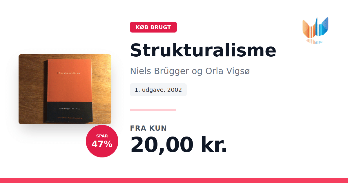 Strukturalisme giver en klar og koncentreret gennemgang af strukturalismens kernebegreber og metodiske greb. Med 104 sider i paperbackudgaven fra 2002 hos Roskilde Universitetsforlag stiller Niels Brügger skarpt på, hvordan strukturer former mening og praksis inden for humaniora og samfundsvidenskab. Gennem præcise definitioner og eksempler fra bl.a. sprog og kultur belyses, hvordan systemer, koder og relationer indgår i analysemodeller. Bogen henvender sig til studerende og fagligt interesserede, der ønsker en grundlæggende forståelse af den strukturalistiske tradition.