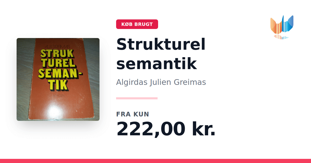 Lige nu kan du købe "Strukturel semantik" af Algirdas Julien Greimas til kun 222,00 kr. Bogen du ser her er brugt, og i god stand. Vi har i øjeblikket kun et enkelt eksemplar til salg af "Strukturel semantik", så slå til mens du kan!