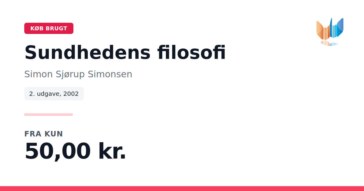 Lige nu kan du købe "Sundhedens filosofi" af Simon Sjørup Simonsen til kun 50,00 kr. Du sparer hele 73% af nyprisen! Bogen du ser her er brugt, og i god stand. Vi har i øjeblikket kun et enkelt eksemplar til salg af "Sundhedens filosofi", så slå til mens du kan!