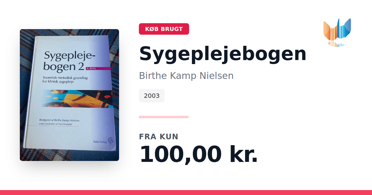 Lige nu kan du købe "Sygeplejebogen" af Birthe Kamp Nielsen til kun 100,00 kr. Bogen du ser her er brugt, og i god stand. Vi har i øjeblikket 2 eksemplarer til salg af "Sygeplejebogen", så husk at se de forskellige udgaver.