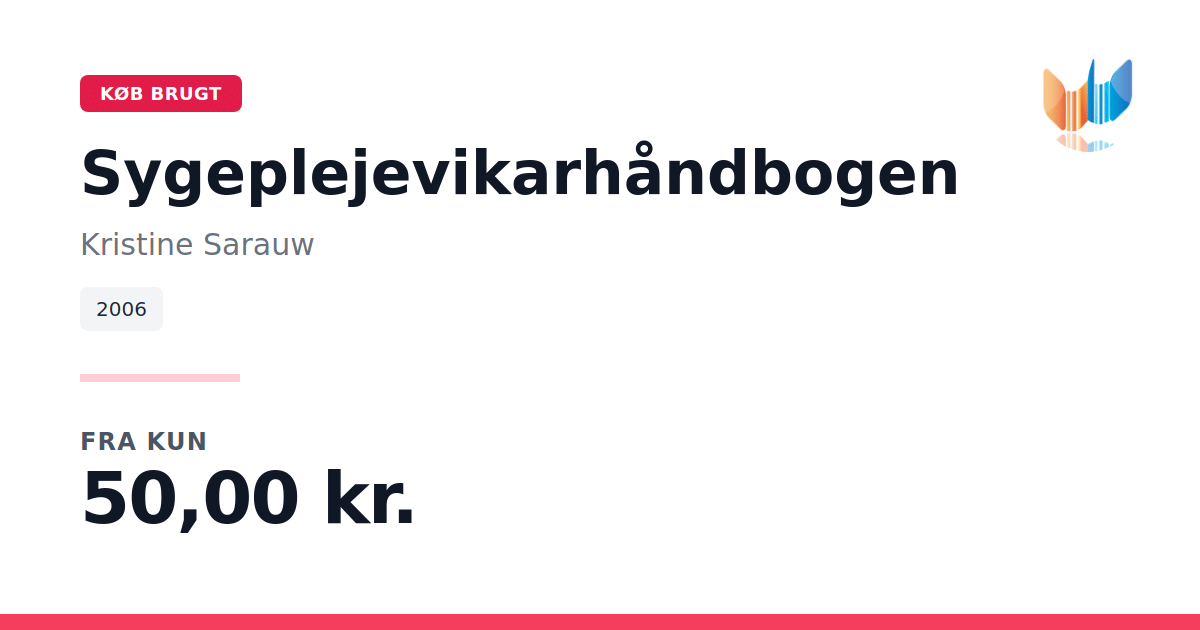 Lige nu kan du købe "Sygeplejevikarhåndbogen" af Kristine Sarauw til kun 50,00 kr. Bogen du ser her er brugt, og i god stand. Vi har i øjeblikket kun et enkelt eksemplar til salg af "Sygeplejevikarhåndbogen", så slå til mens du kan!