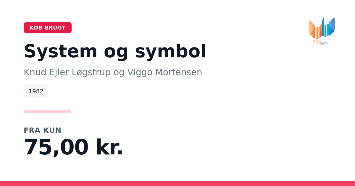 Lige nu kan du købe "System og symbol" af Knud Ejler Løgstrup og Viggo Mortensen til kun 75,00 kr. Bogen du ser her er brugt, og i god stand. Vi har i øjeblikket kun et enkelt eksemplar til salg af "System og symbol", så slå til mens du kan!