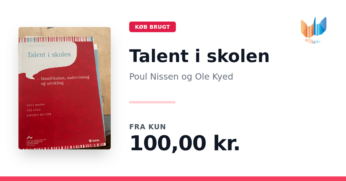 Lige nu kan du købe "Talent i skolen" af Poul Nissen og Ole Kyed til kun 100,00 kr. Bogen du ser her er brugt, og i perfekt stand. Vi har i øjeblikket 2 eksemplarer til salg af "Talent i skolen", så husk at se de forskellige udgaver.